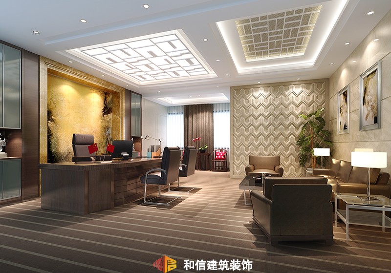 而重要的客戶(hù)接待區(qū)以真皮沙發(fā)和實(shí)木打造的高端辦公空間,整個(gè)空間氣場(chǎng)十足,展示濃濃的中式風(fēng)格。