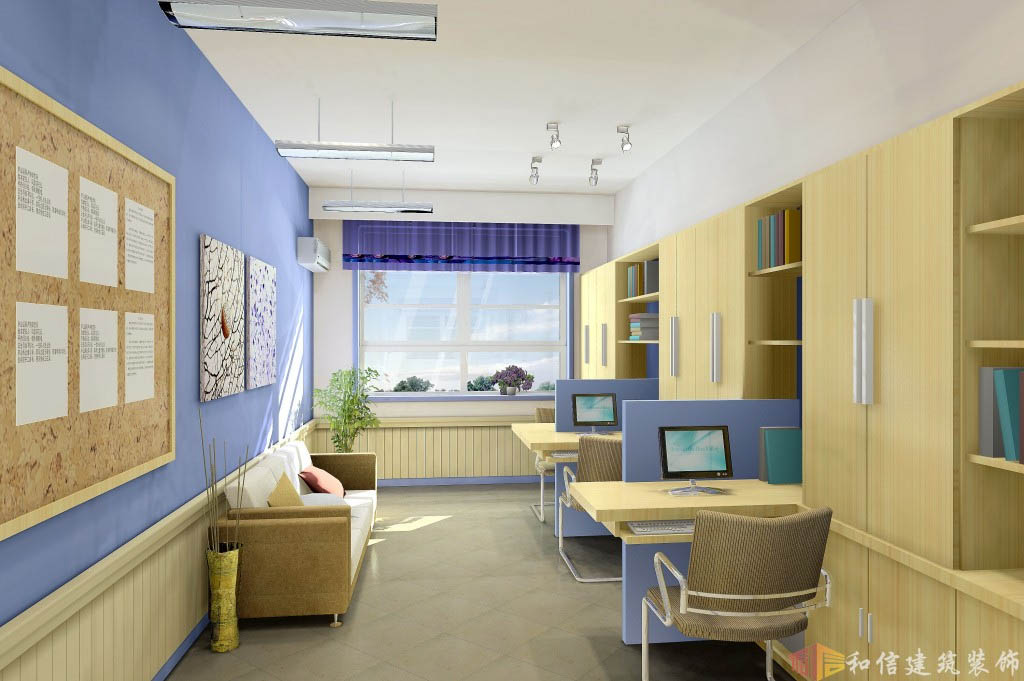 和信建筑以現(xiàn)代風(fēng)格為導(dǎo)向,利用合理的空間與分配,結(jié)合顏色、光、電鞥現(xiàn)代表現(xiàn)手法,為孩子創(chuàng)造出一個(gè)寬敞明亮 、溫馨舒適的學(xué)習(xí)環(huán)境。和信設(shè)計(jì)師團(tuán)隊(duì)采用充滿靈動(dòng)的色彩格子,運(yùn)用不拘一格的空間設(shè)計(jì),活躍了孩子的思維,對(duì)于培養(yǎng)孩子開(kāi)朗的性格有極大的幫助。本次設(shè)計(jì)成功之后獲得了學(xué)校領(lǐng)導(dǎo)的一致好評(píng)。