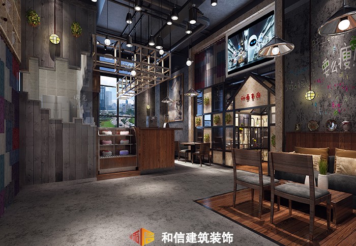 項(xiàng)目介紹:本案咖啡店裝修在最初的設(shè)計(jì)規(guī)劃上,設(shè)計(jì)師著力想打造一間具有人文色彩的咖啡廳。在整體設(shè)計(jì)中,我們希望咖啡廳裝修能展示給顧客一種文藝的氛圍,所以采用了LOFT的設(shè)計(jì)風(fēng)格,使整個(gè)空間達(dá)到了功能和藝術(shù)的完美結(jié)合。簡潔界面的設(shè)計(jì)、材質(zhì)的選用應(yīng)盡可能簡單,這樣才能更清晰地表達(dá)空間設(shè)計(jì)的意圖。簡單的形式和材料成就了純粹的空間氛圍,并使空間產(chǎn)生張力。著重運(yùn)用幾種特定材質(zhì)的相互穿插,以形成空間的有機(jī)和豐富。單純材質(zhì)的延續(xù)使用可使空間更具整體性。光和影的變化賦予室內(nèi)空間以生命。