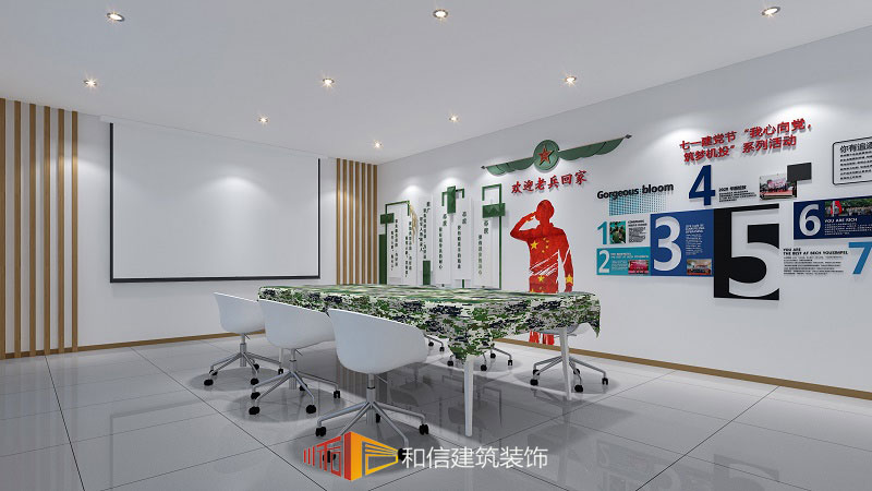 退役軍人服務(wù)站大廳設(shè)計(jì)明亮大方,體現(xiàn)退役軍人服務(wù)站力求為所有退役軍人建設(shè)另一個(gè)溫暖的家,退役軍人服務(wù)站,為全區(qū)退役軍人提供宣傳政策,事項(xiàng)咨詢、來(lái)訪接待、權(quán)益保障、關(guān)愛(ài)幫扶等服務(wù)保障工作,讓溫暖直達(dá)退役軍人心坎,大廳墻上一個(gè)老兵致敬與軍裝似的桌面相呼應(yīng),熱血豪情,永葆軍人本色!